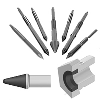 Se fabrican también, matrices y punzones de carburo de tungsteno para embutido profundo de piezas de acero, cobre, bronce y aluminio, como levanta válvulas, botadores, portainyectores, vainas para balas, envases para latas, pomos, pilas, etc.